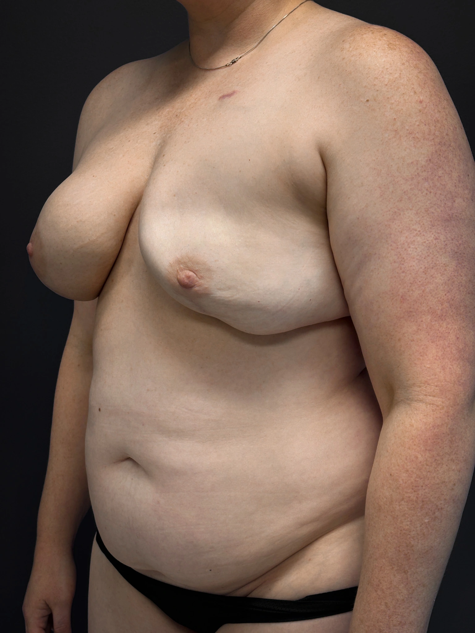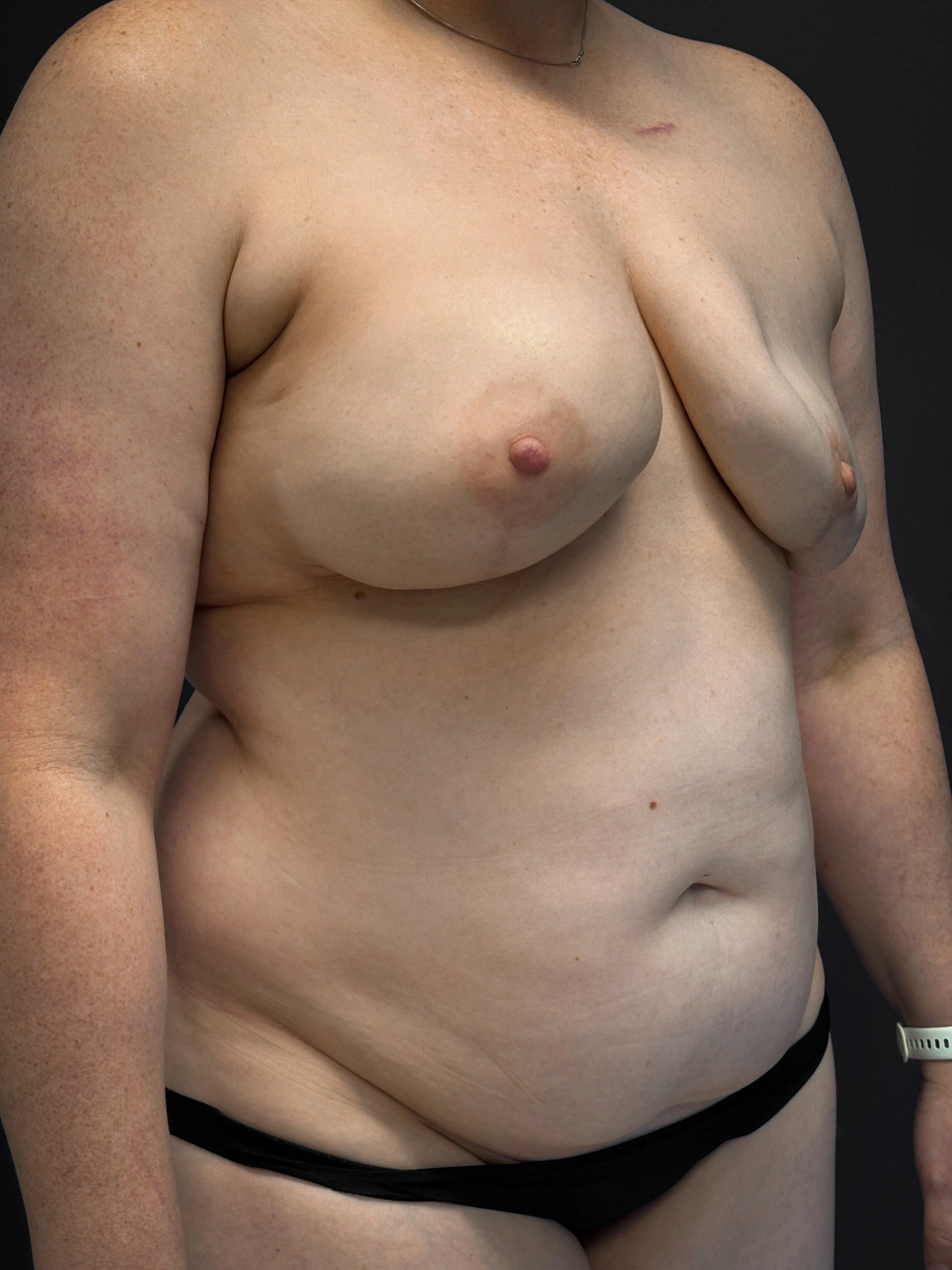 This patient underwent a DIEP (Deep Inferior Epigastric Perforator) flap breast reconstruction following a mastectomy. The DIEP flap technique uses the patient’s own abdominal skin and fat to create a natural-looking breast without sacrificing abdominal muscles, allowing for a more comfortable recovery and maintaining core strength.